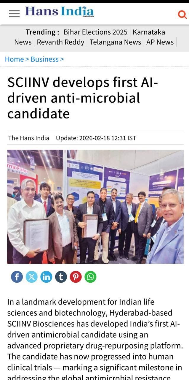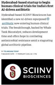 News Hyderabad-based startup to begin human clinical trials for India’s first AI-driven antibiotic Read More » February 23, 2026